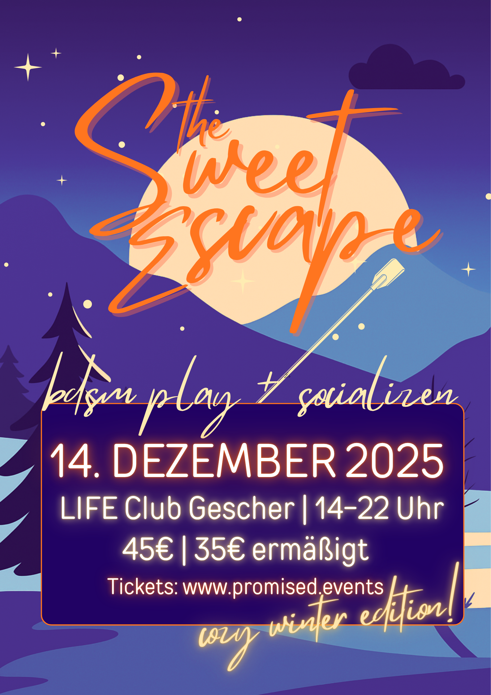 Wir schaffen einen geschützten, inklusiven Raum, in dem du dich willkommen und wohlfühlen kannst – ganz gleich, ob du erste Erfahrungen sammeln oder tiefer eintauchen möchtest. Ob Spiel oder Gespräch, Genießen oder Kontakt: Die SWEET ESCAPE ist für dich da.
